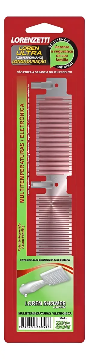 Comercial Vipasa Distribuidora Resistência Chuveiro Loren Shower Lorenzetti Ultra 220V Resistência Loren Ultra: Exclusiva resistência de alta performance e longa duração em comparação às resistências comuns. - Nunca coloque uma resistência que tenha características diferentes do padrão desenvolvido para seu produto - Descrição Técnica Voltagem: 220v Potência: 6800w